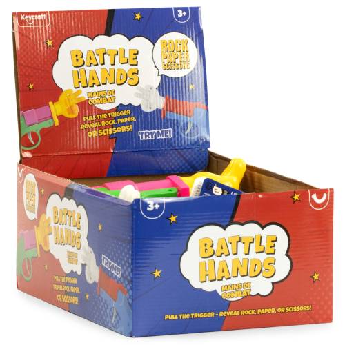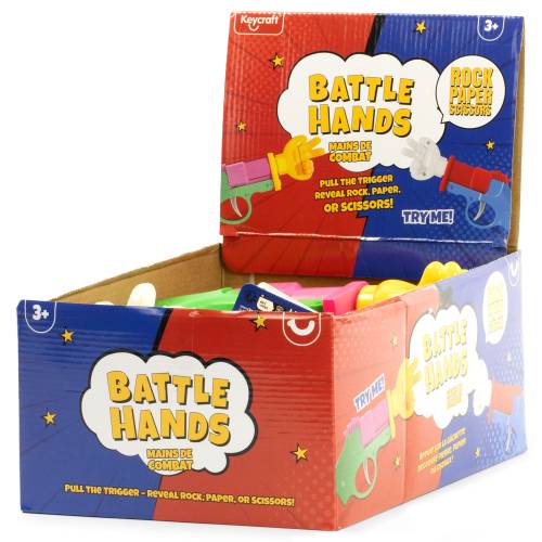 A modern take on a traditional game - Battle Hands enables you to play 'Rock, Paper, Scissors' in a whole new way! Simply pull the trigger and the game will randomly play rock, paper or scissors providing hours of family fun!