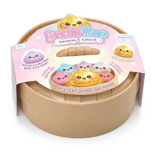 Lucky Bao Mystery Squishy Dumplings are the adorable viral toys trending all over social media and now they’re ready to fly off your shelves! Each bamboo steamer hides a mystery squishy dumpling inside, so the fun begins the moment it’s opened. There are 6 cute Lucky Bao characters to collect, each with a soft, super satisfying squeeze that kids love to squish and play with. The excitement builds as collectors search for the rare glitter Golden Bao, the special chase character everyone wants to find. With their mystery reveal, collectible characters, and sensory squishy fun, Lucky Bao are the perfect impulse toy for retailers. A fun, trending product that keeps customers coming back to collect them all.