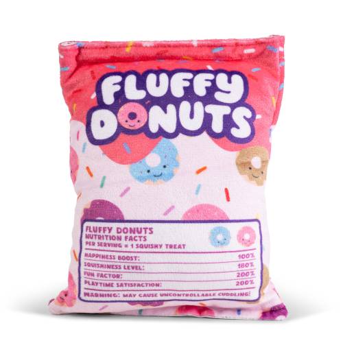 Fluffy Doughnuts Squishy Snacks, Sensory Toys. A must-have of any pretend tea party, this sweet plush toy features mini plush doughnuts in a plush snack bag. Children will love the imaginative play elements - a welcome addition to any play kitchen making it perfect for gifting!